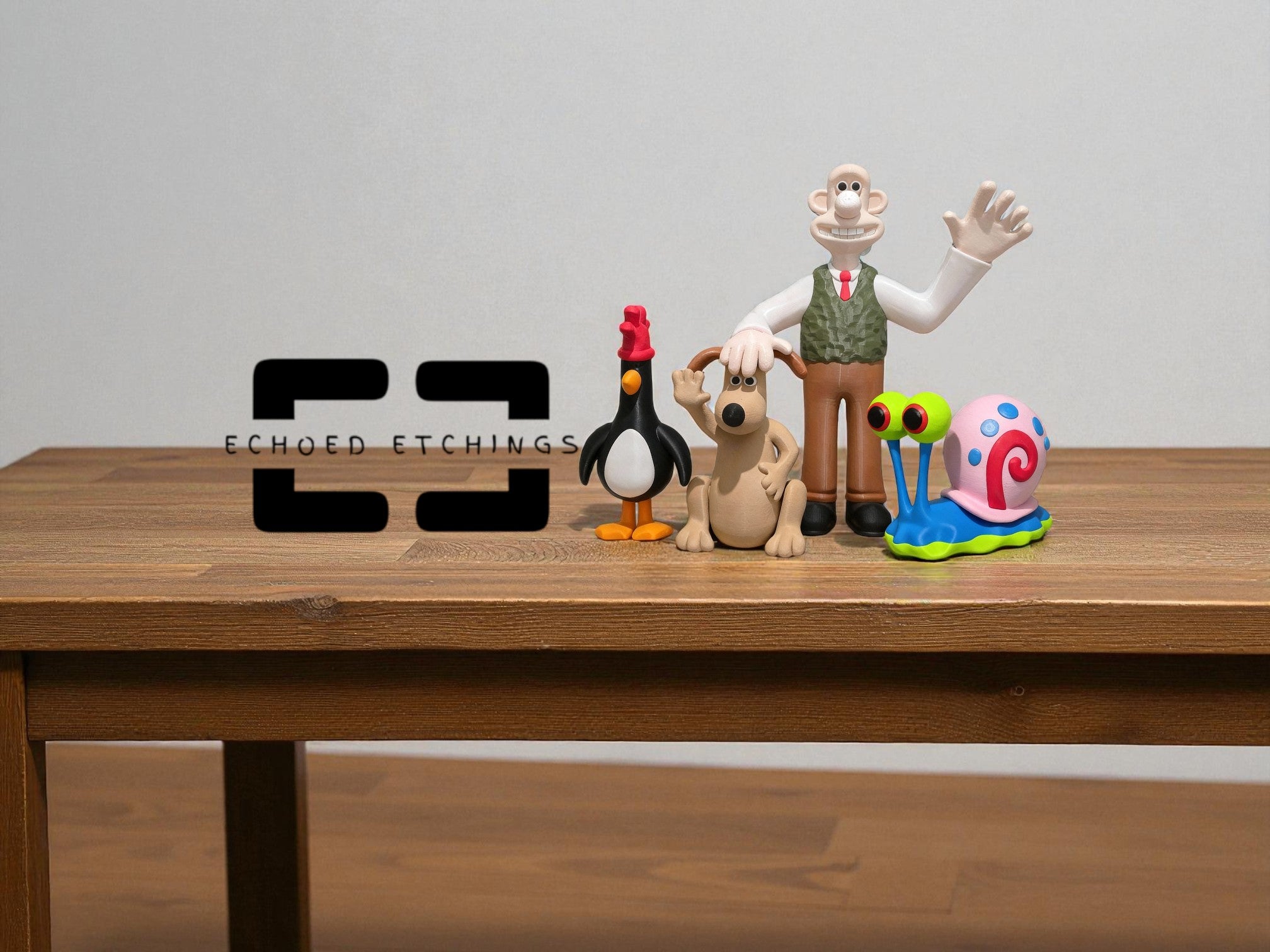 Wallace, Gromit & Feathers McGraw - 3D Printed Desk Figurines